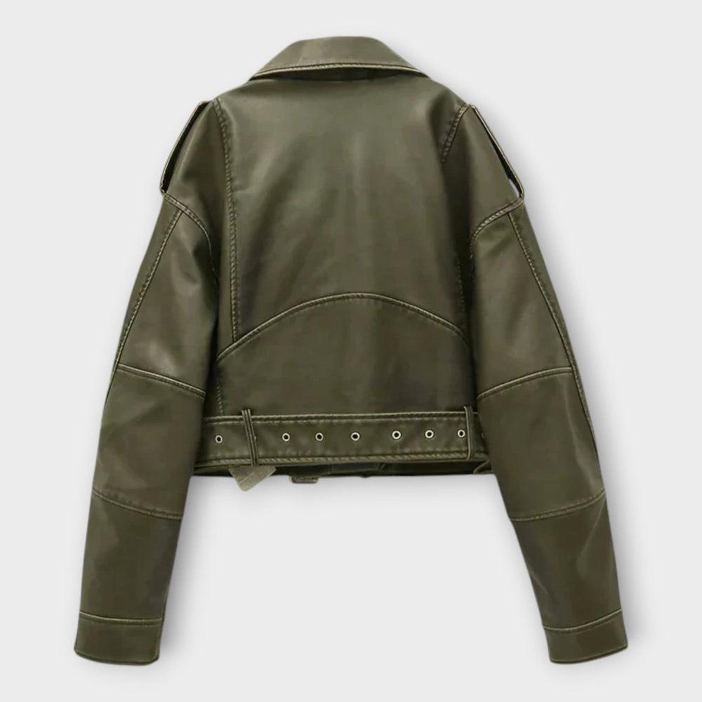 Μοντέρνο Κοντό Δερμάτινο Μπουφάν με Ζώνη και Εκλεπτυσμένη Αισθητική